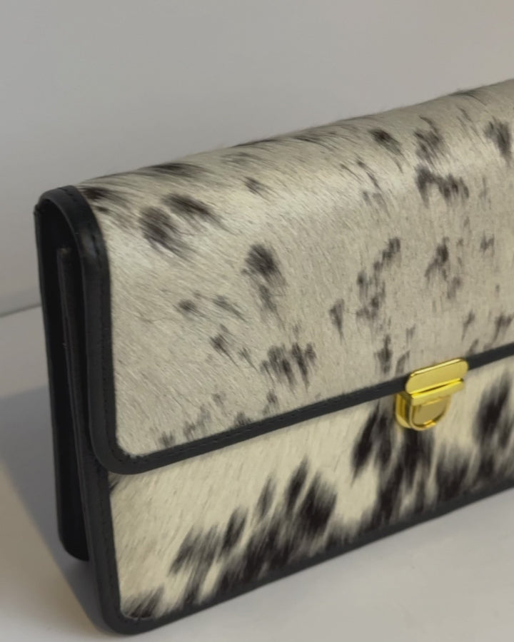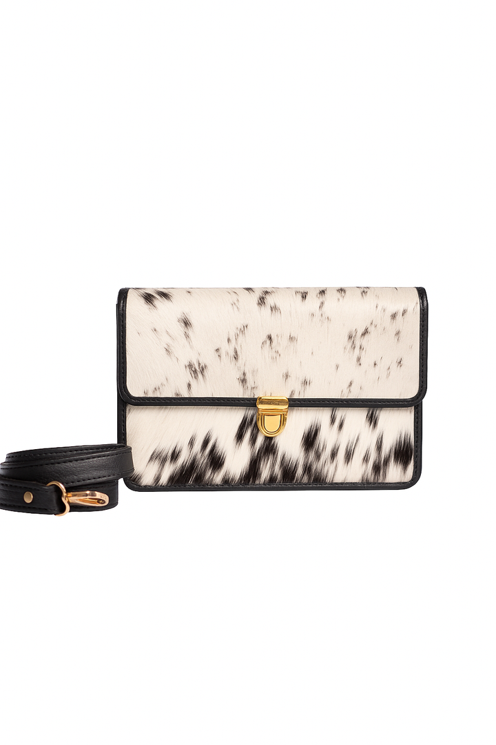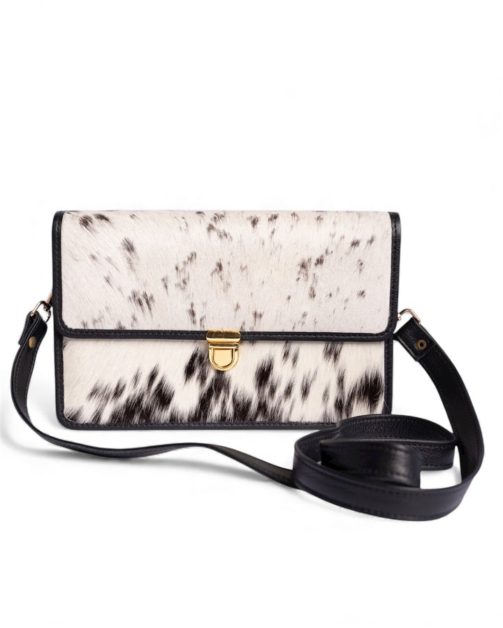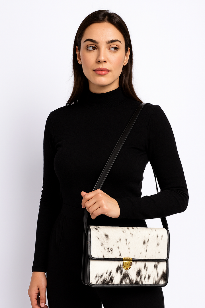 Elevate your everyday look with this exquisite Speckled Hair-On Leather Crossbody Bag — a perfect blend of natural elegance and modern design. Handcrafted from genuine hair-on cowhide leather, this bag features a beautiful mix of ivory white and charcoal black speckles, making each piece one-of-a-kind.